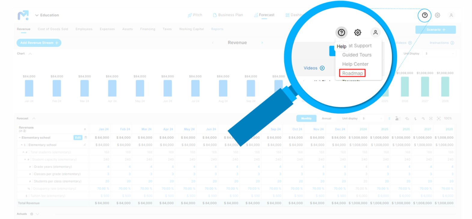 You can now directly access the Modeliks Product Roadmap from within the app. This functionality is located in the help icon menu on the header menu of the application.